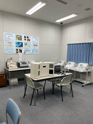👆検査を行うG408の部屋には検査機器が沢山あります!オープンキャンパスでも入ることができます.聴力検査を実施する部屋なので完全に締め切ると音が響きにくい静かな部屋になります!(防音室)